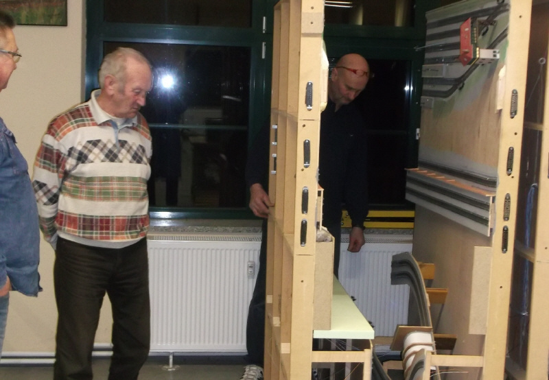Am Mittwoch, dem 09.März 2016 war es soweit. Die HO-Anlage unseres Modellbahnfreundes Jörg Jaenecke wurde in die Räume unseres Clubs überführt. Die Anlage besteht aus 6 Teilen mit den Abmessungen von je 1,30 x 1,90 m, die sich zu einer Anlage von 1,90 x 7,80 m zusammen setzen lassen.